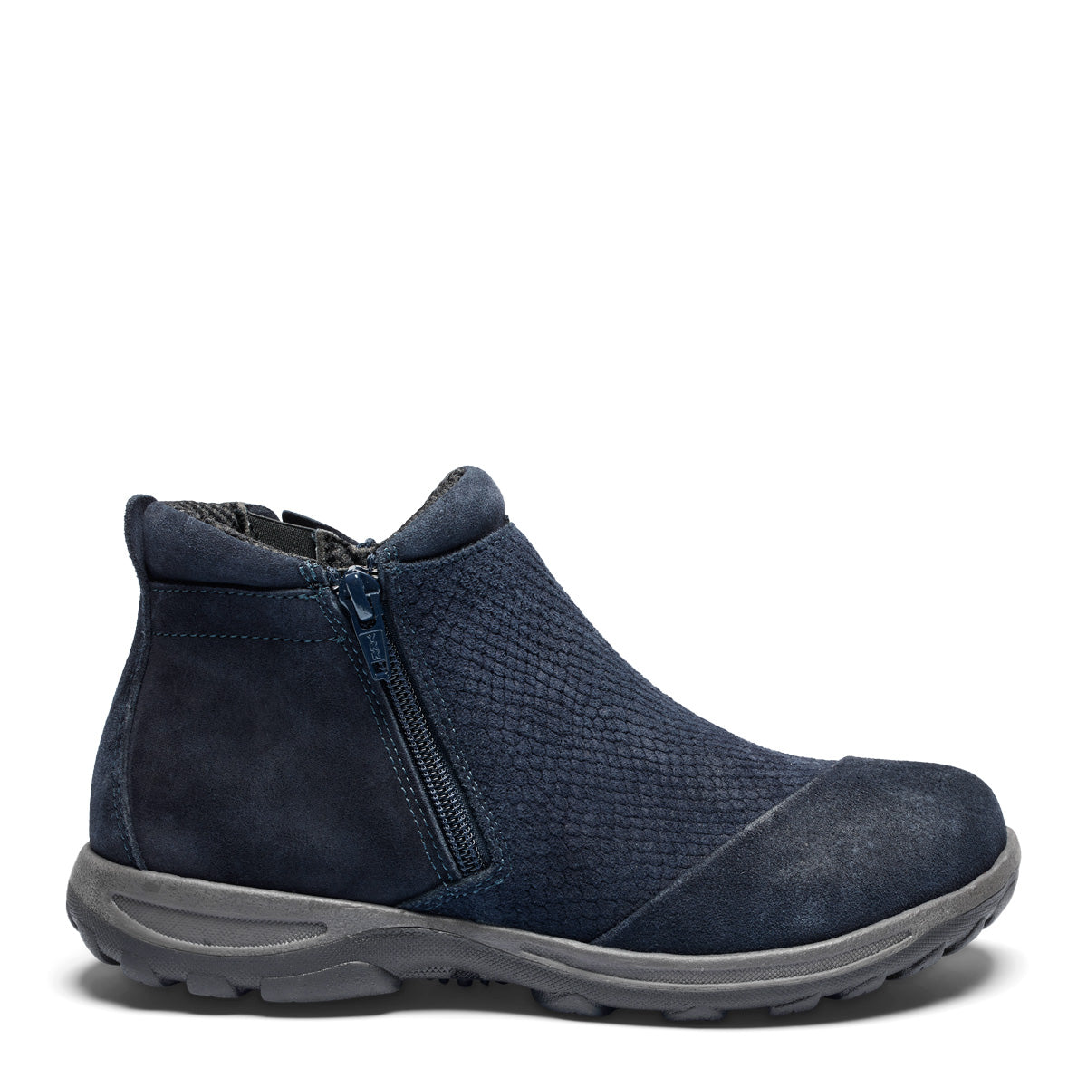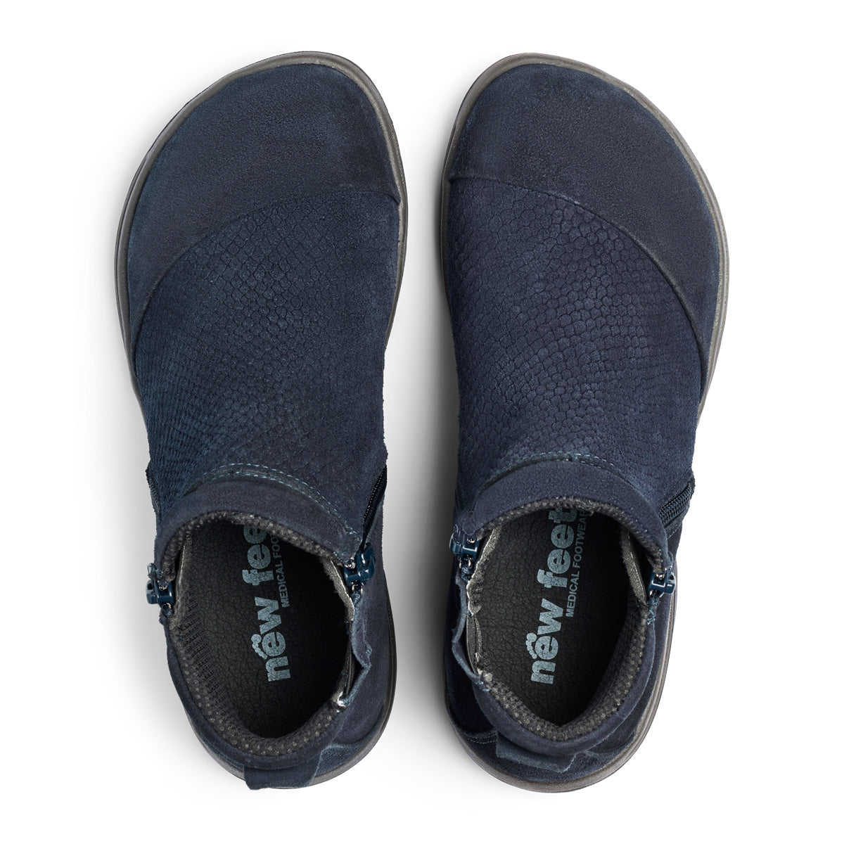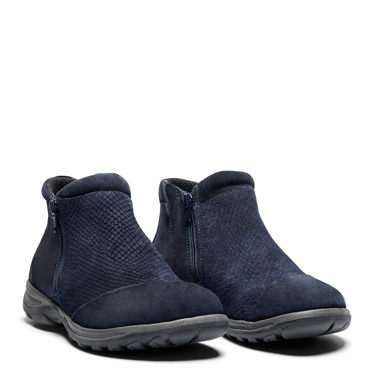 Oplev en moderne og komfortabel dame ankelstøvle i blå med to praktiske lynlåse, der kombinerer funktion og stil. Støvlen er designet til at give maksimal komfort i hverdagen – med et blødt tekstilfor, vandafvisende TEX-membran og en støddæmpende Protektor® indlægssål, som gør hver skridt ekstra behageligt.