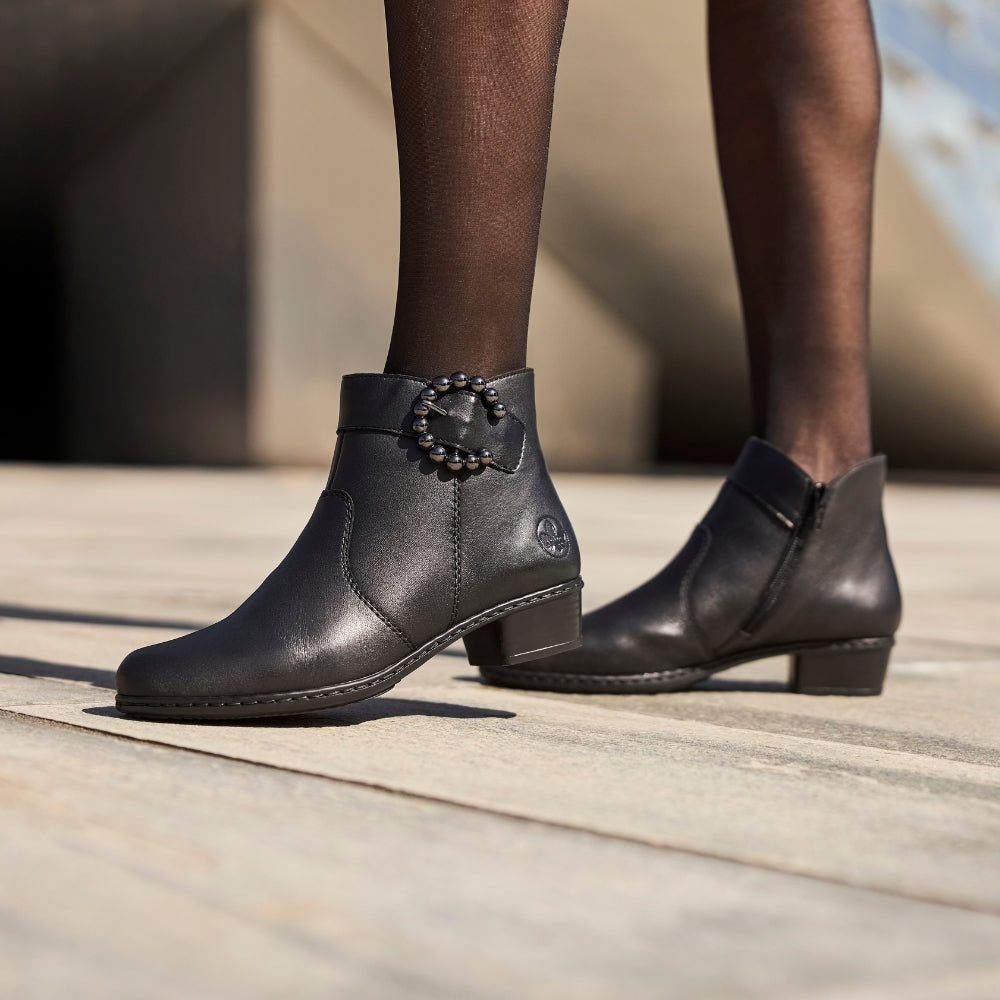Rieker støvle til dame i sort Y0797-00 er en klassisk og elegant støvle, der kombinerer stilfuldt design med høj komfort. Den sorte skindoverdel med fine detaljer giver et feminint udtryk, som passer til både hverdag og mere formelle anledninger.