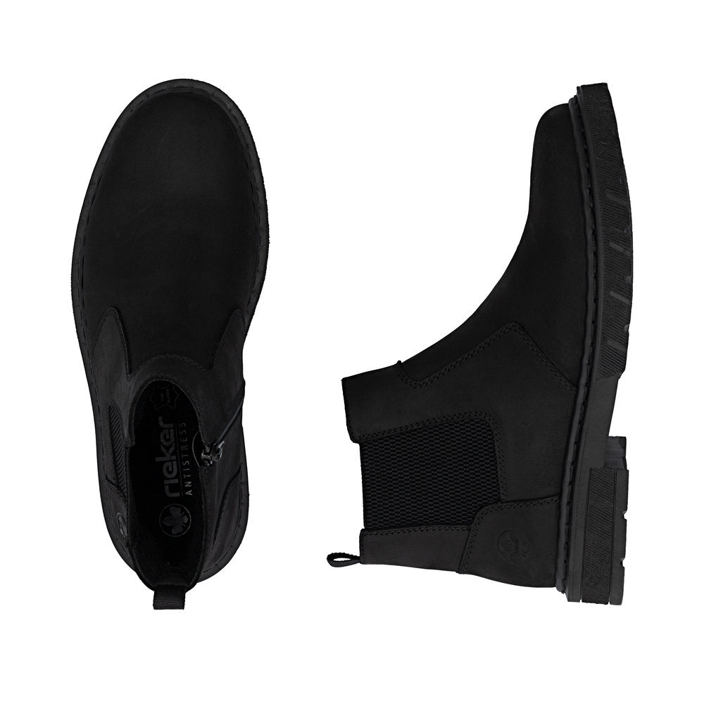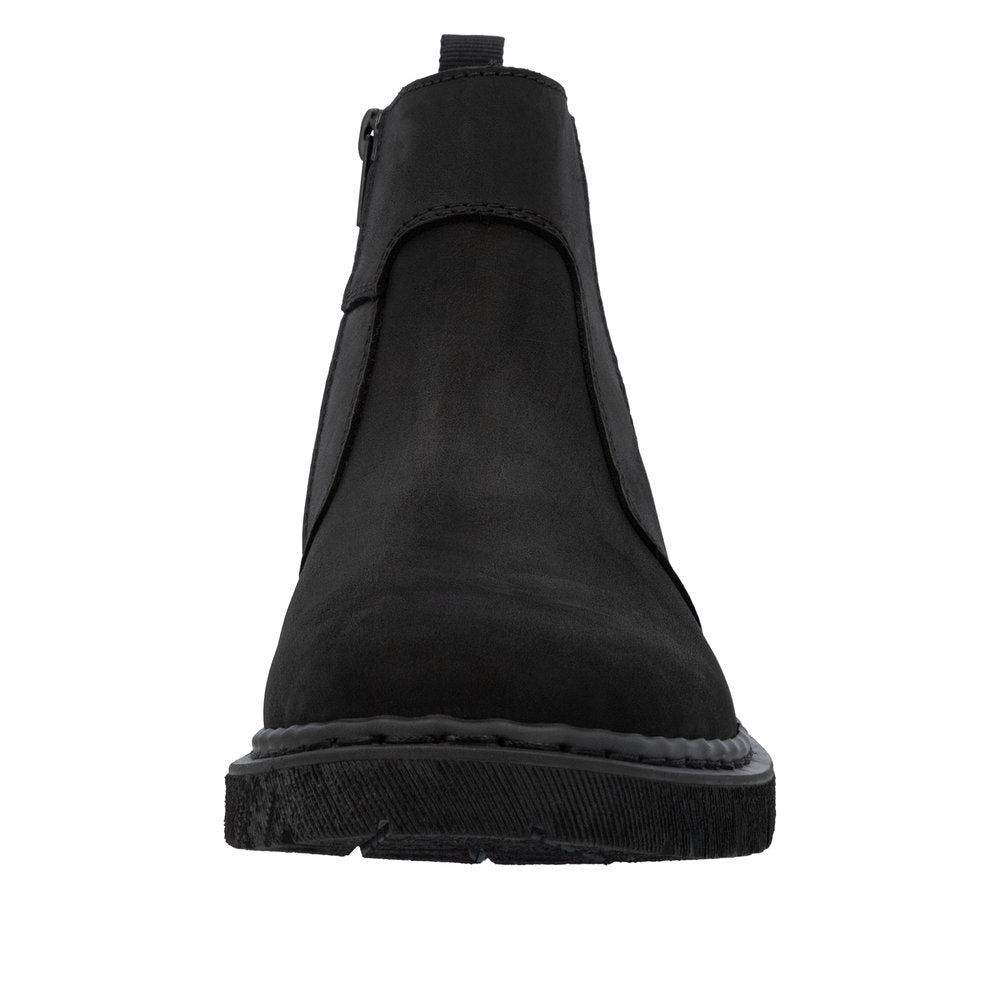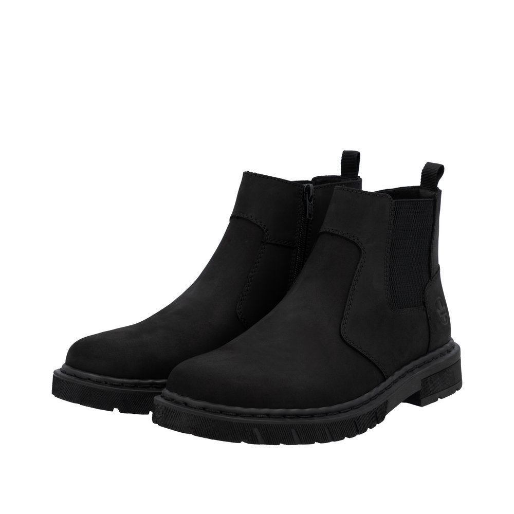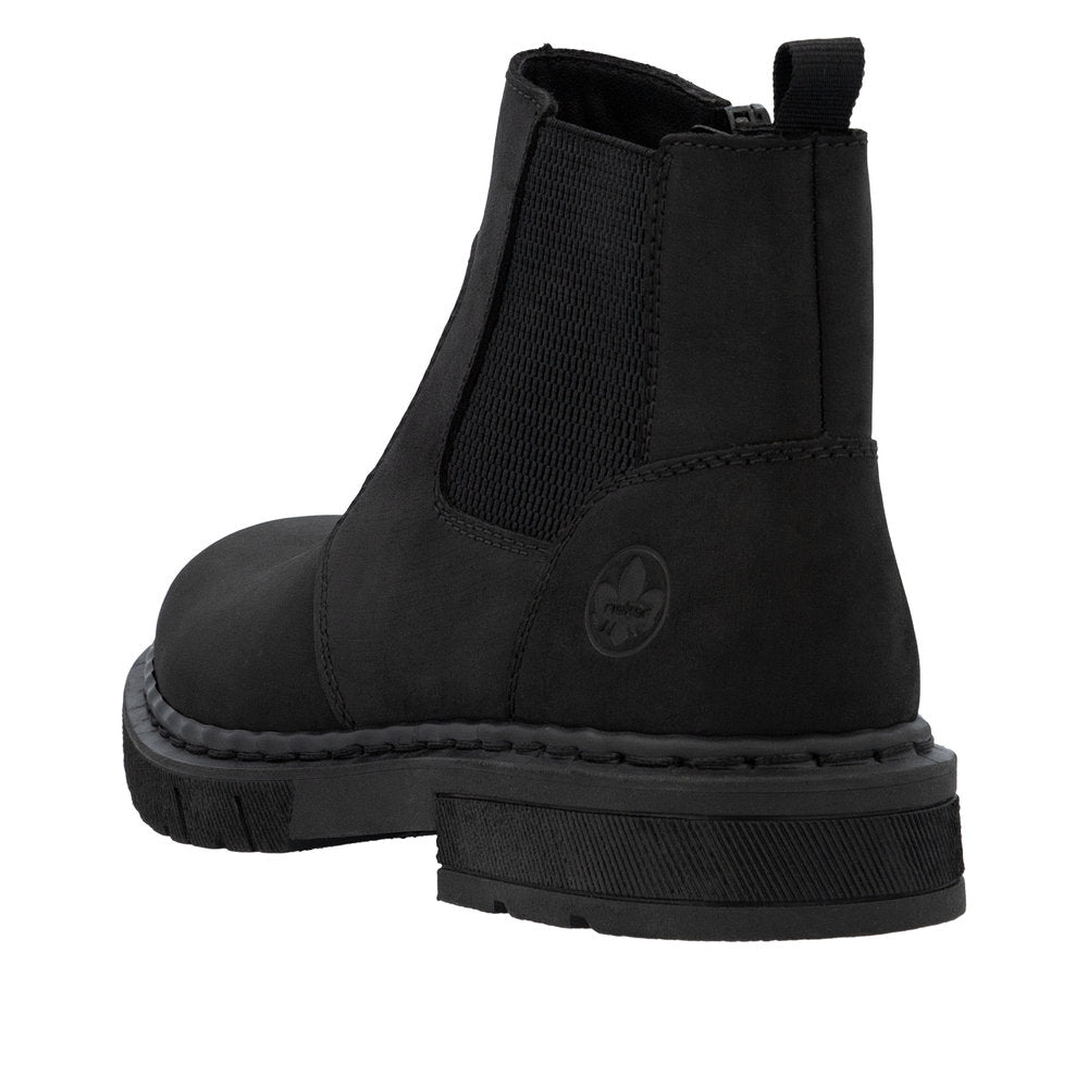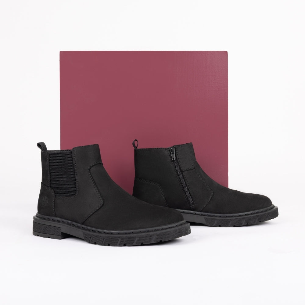 Rieker støvle til herre i sort 31650-00 kombinerer flot design med praktiske detaljer og høj komfort. Denne smarte skindstøvle har både elastik og en funktionel lynlås, hvilket gør den nem at tage på og af, samtidig med at pasformen forbliver fleksibel.
