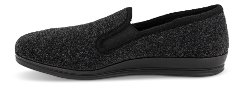 Hjemmeskoen har hælkappe og elastikker i siden, som gør det nemt at regulere pasformen over vristen, og sikrer, at skoen sidder behageligt hele dagen. Den letvægtige og fleksible sål giver optimal bevægelsesfrihed og komfort.