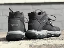 Overdelen er fremstillet i læder og syntetisk materiale, der er 100 % vandtæt, så dine fødder holdes tørre i al slags vejr. Den kulinfunderede Skechers Air-Cooled Memory Foam® indersål giver frisk, ventileret komfort dagen igennem, og den Goodyear® gummiydersål sørger for fremragende greb og slidstyrke på både våde og ujævne overflader.