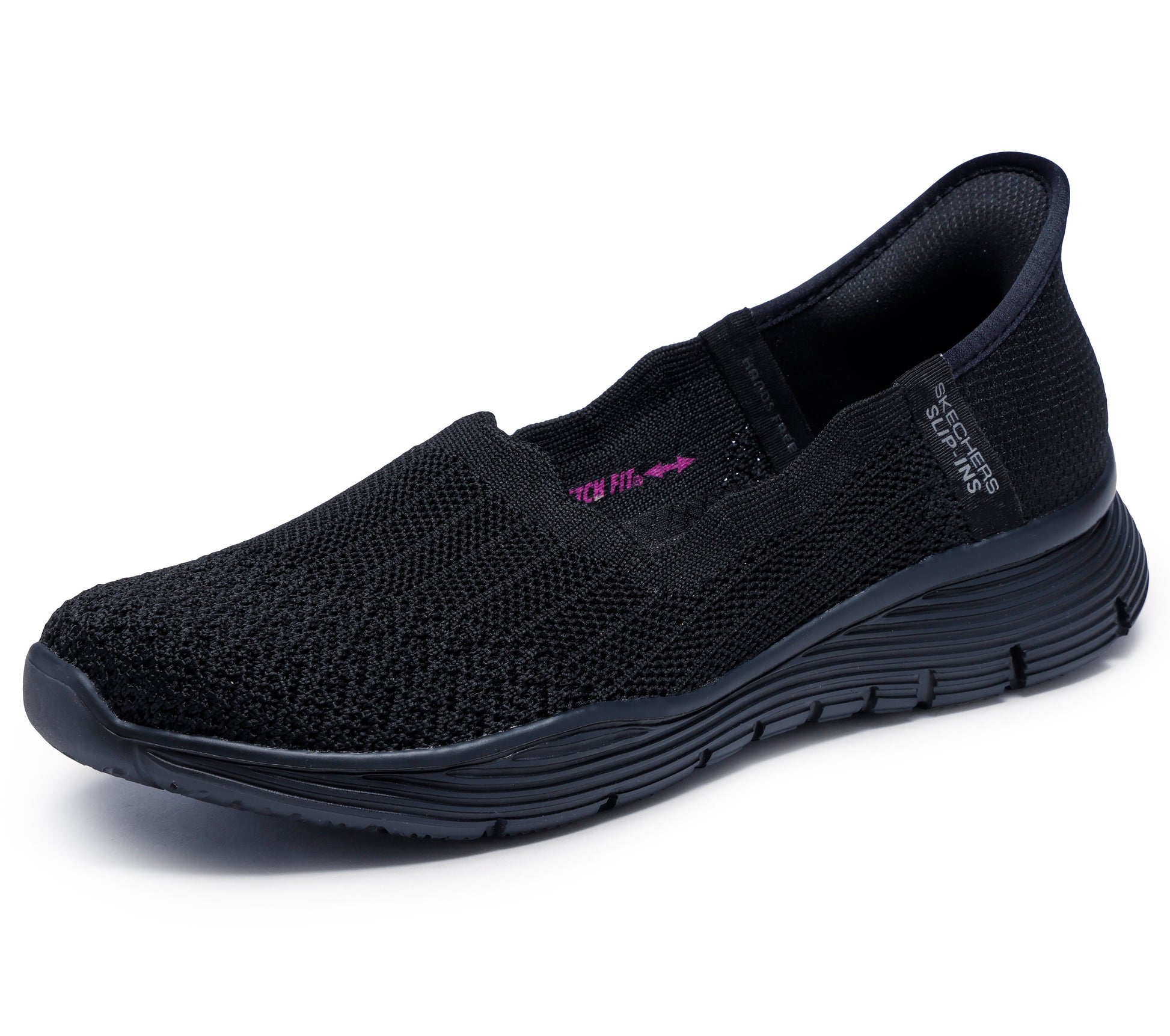 Oplev lethed og fleksibilitet med Skechers Hands Free Slip-ins®: Seager - Believe It. Denne elegante dame ballerina forener stil og komfort i et slankt, moderne design. Den Stretch Fit® konstruerede strikoverdel former sig naturligt efter foden og giver en perfekt, sokkelignende pasform.