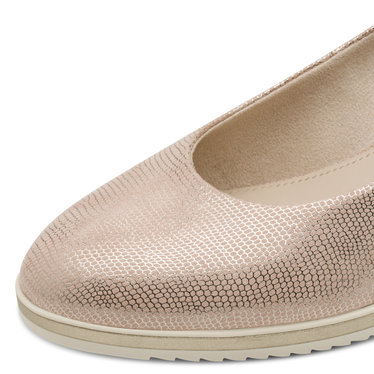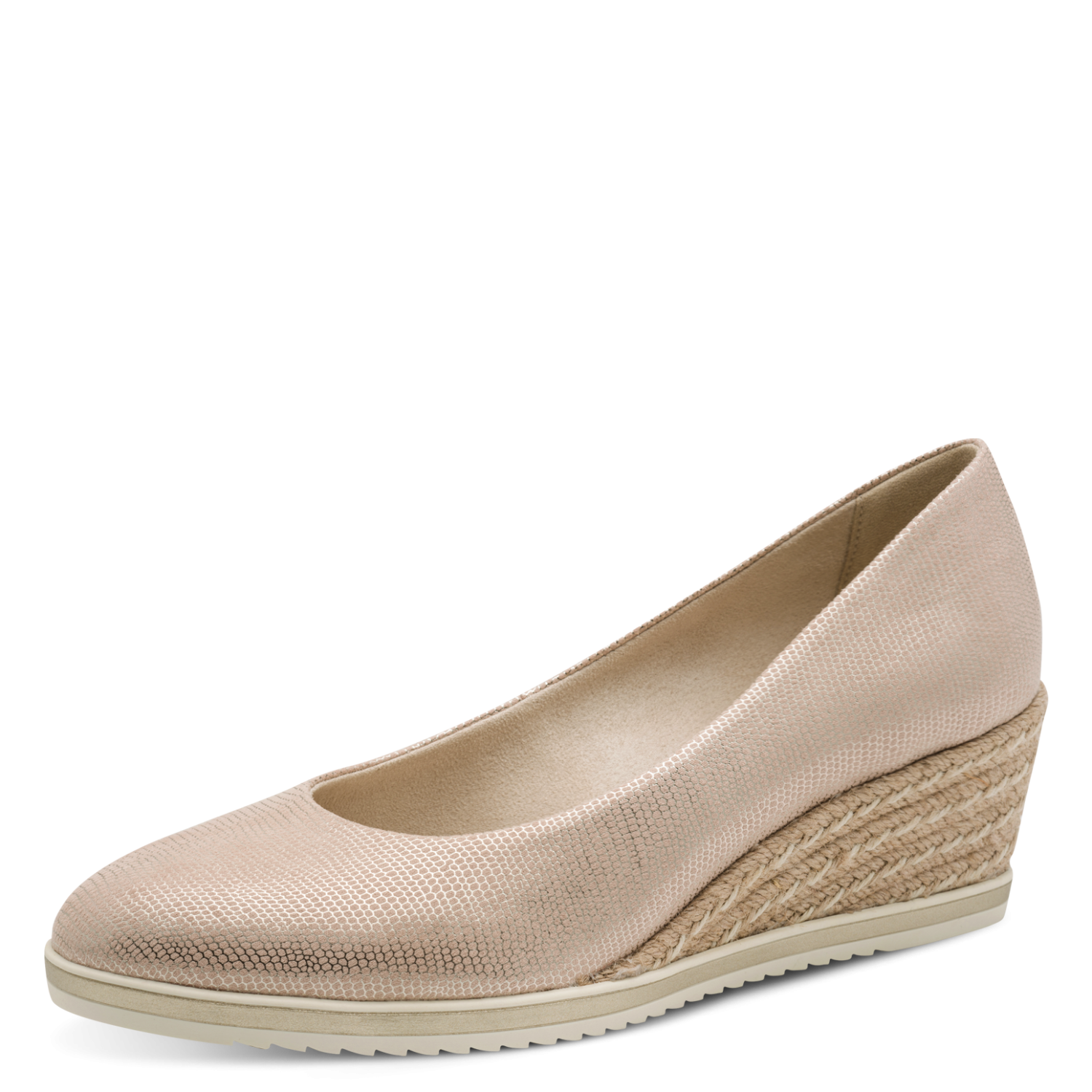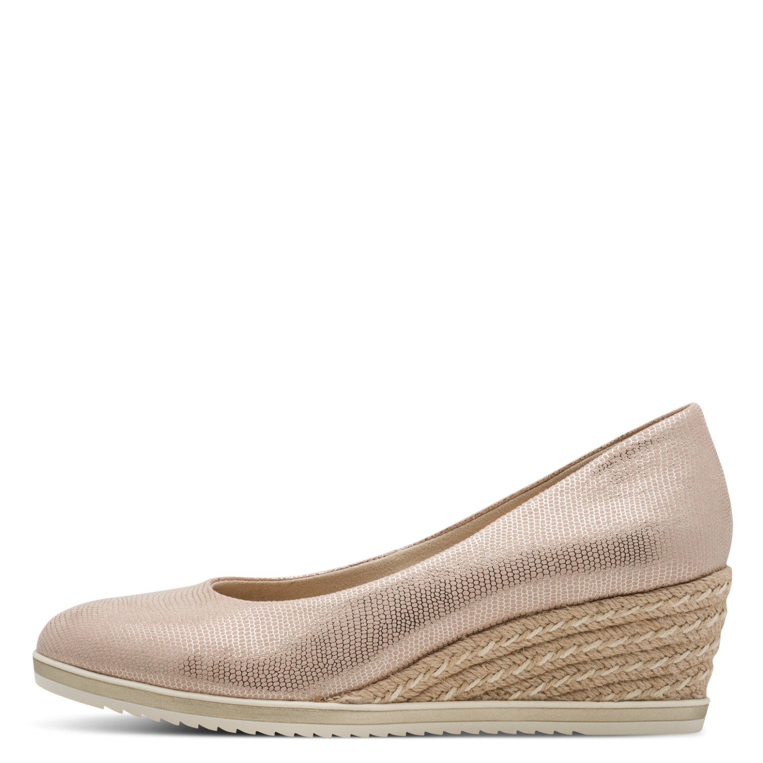 Tamaris 22313-968 Gold Struktur er en elegant sko med kilehæl, som kombinerer feminin stil med god komfort. Den gyldne overflade med struktur giver skoen et eksklusivt og moderne udtryk, der passer perfekt til både hverdag og festlige anledninger.